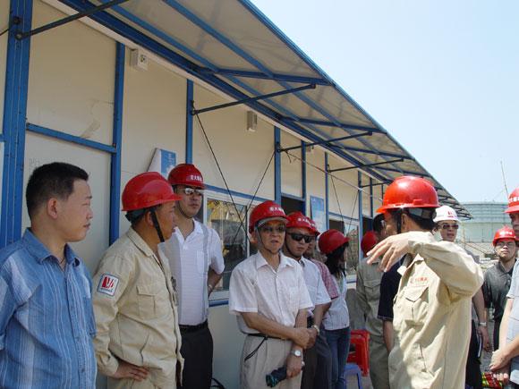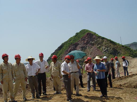 工程项目经理卢玛良首先对该项目作了简明的介绍,并对施工面临的实际情况向公司领导和刘教授作了汇报。为了更直接的了解工程状况,刘教授亲临施工现场进行实地考察,和现场施工人员进行了密切交流,仔细询问施工技术方面的细节。