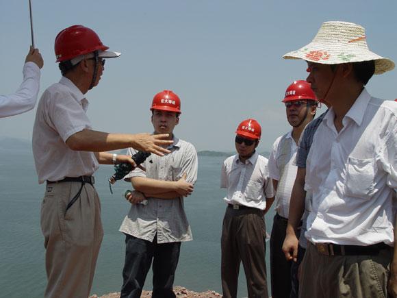 8月1日,公司顾问刘殿中教授在公司领导王总的陪同下,带领公司总部部分员工到惠州澳头中海油马鞭州岛场平工程工地现场指导工作。