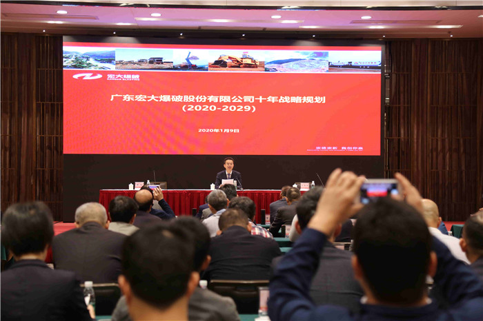 1月9日上午,公司董事长郑炳旭作了题为《广东宏大爆破股份有限公司十年战略规划》专题宣贯,对公司未来十年发展进行了谋划。报告中指出:为落实广业集团的发展战略,推动高端制造和绿色环保两大主业在我公司的持续深化,宏大在未来十年内,始终坚持党的领导,坚持国有控股、国有民营的体制机制,坚持合伙创业的激励约束管理机制,大力发展壮大军工、矿服、民爆三个业务板块,成为全球知名的军工企业,成为具有全球影响力的矿服龙头企业,成为全国炸药产能占有率最高的民爆龙头企业。