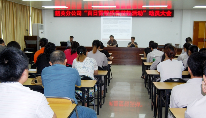 首先,韶关分公司技术部部长江美乐同志宣读了《韶关分公司“百日雷管质量整顿活动”方案》,明确了指导思想、提出了总体要求和具体目标及活动步骤、强调了工作要求。