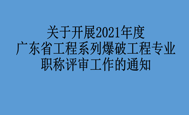各地级以上市人力资源和社会保障(人事、人力资源)局,各有关单位、企业: 根据省人力资源和社会保障厅《关于做好2021年度职称评审工作的通知》(粤人社发〔2021〕38号)及《广东省人力资源和社会保障厅关于印发<广东省民用爆炸物品工程技术人才职称评价标准条件>的通知》(粤人社规〔2019〕67号)文件精神,为做好2021年我省工程系列爆破工程专业的职称评审工作,通知如下