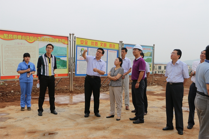 8月27日上午,中央教育实践活动办公室综合组组长、中组部组织二局局长李小新一行4人莅临繁昌县调研我公司峨山头废弃矿山治理项目。安徽省委组织部副部长、省委活动办常委副主任何军,芜湖市委常委、组织部长谢胜权,市委常委、繁昌县委书记单向前,县长胡金贵,县国土局领导,广东宏大爆破股份有限公司工程事业部副总经理王铁等陪同调研。、 调研过程中,李小新局长一行认真听取了我公司讲解员对峨山...