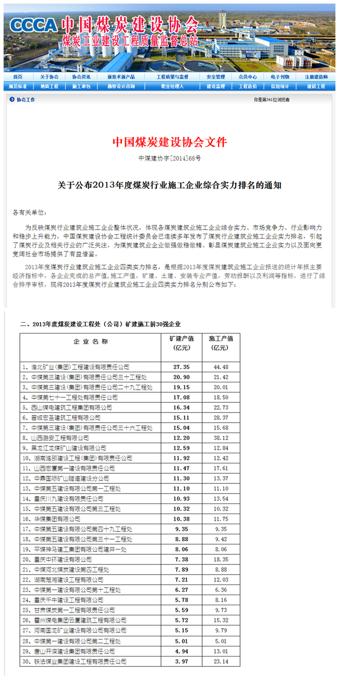 9月2日,中国煤炭建设协会下发了《关于公布2013年度全国煤炭行业施工企业综合实力排名的通知》(中煤建协字【2014】68号文),广东宏大爆破股份有限公司控股子公司:湖南涟邵建设工程(集团)有限责任公司(以下简称:涟邵建工)在全国煤炭建设工程处(公司)矿建施工综合实力排名中位居第10名,首次跨进前十强。 为了反映煤炭行业建筑业施工企业整体状况,体现各煤炭建筑业施工企业综合实力、市场...