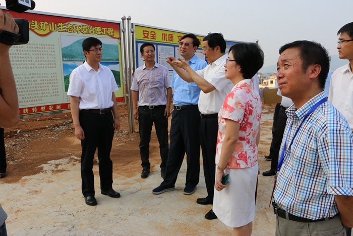 7月21日下午,安徽省委常委、宣传部部长曹征海一行二十余人在芜湖市委书记高登榜、芜湖市委常委、繁昌县委书记单向前、繁昌县国土局局长王军、广东宏大爆破股份有限公司控股子公司宏大国源(芜湖)资源环境治理有限公司(以下简称宏大国源公司)总经理王铁、副总经理杨家富等陪同下来到峨山头废弃矿山治理点...