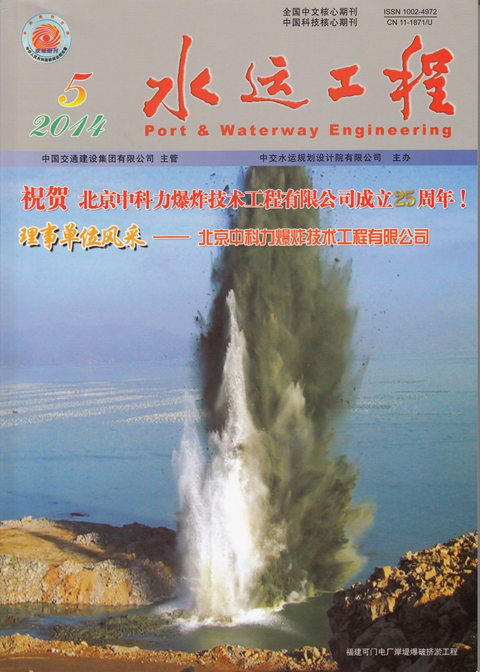 2014年第5期《水运工程》封面采用了广东宏大爆破股份有限公司控股子公司:北京中科力爆炸技术工程有限公司(以下简称:中科力)爆破现场照片。《水运工程》作为中国科技核心期刊之一,拥有对水运工程行业最具影响力的编委会,并被国内同行公认为在水运工程行业中有重大影响的权威性技术刊物。时值中科力成立二十五周年(1989—2014),能荣登其封面是对我公司的肯定与嘉许,并说明中科力在水运行业中拥有着极大影响...