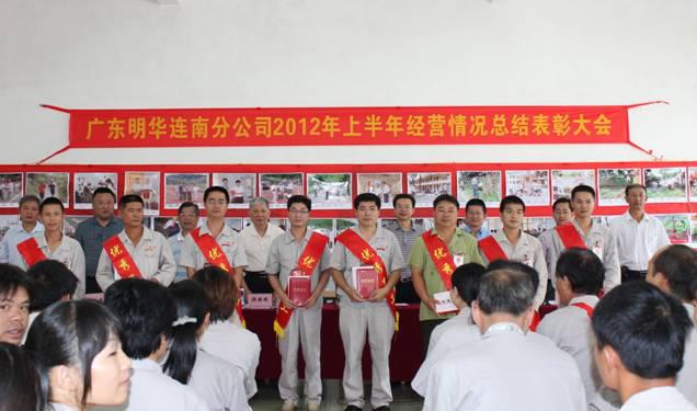 2012年9月11日上午,广东明华连南分公司2012年上半年经营情况总结表彰大会在连南分公司隆重召开。出席本次表彰大会的有广业公司党委副书记洪旗歌、宏大公司总经理郑炳旭、执行总经理方健宁、民爆事业部总经理郑永伟及其他相关领导。 本次大会由宏大公司执行总经理方健宁主持。会上,首先由分公司总经理柯育宏作连南分公司2012年上半年生产经营情况总结及下半年工作计划报告,然后由民...