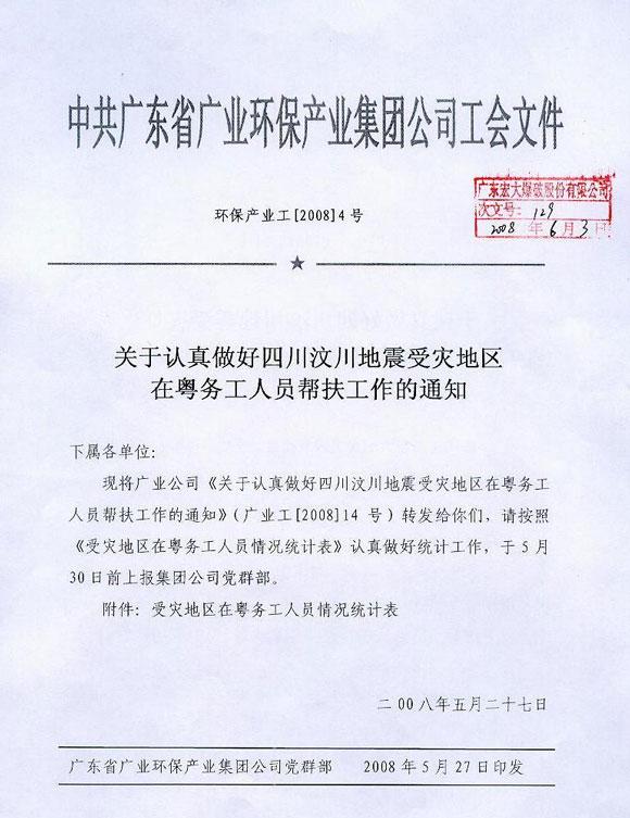5月12日四川汶川大地震发生后,我司工会对公司四川籍受灾员工进行了慰问并发放慰问金,以实际行动支援灾区抗震救灾,鼓励受灾员工乐观、坚强、勇敢的面对困难,树立重建家园信心。