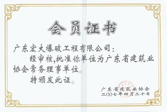 2007年12月6日,我司参加了广东省建筑业协会第三届理事会二次会议,我司被批准为广东省建筑业协会第三届常务理事单位,总经理郑炳旭任该届常务理事。该协会是广东省各地区、各部门从事土木工程、建筑工程、线路管道设备安装工程、装修工程等建筑业企业、社会团体自愿参加组成的全省性行业组织。业务范围包括向政府及有关部门反映广大建筑施工企业的要求和愿望,为政府部门制定行业管理的政策、法规提供参考依据等。...