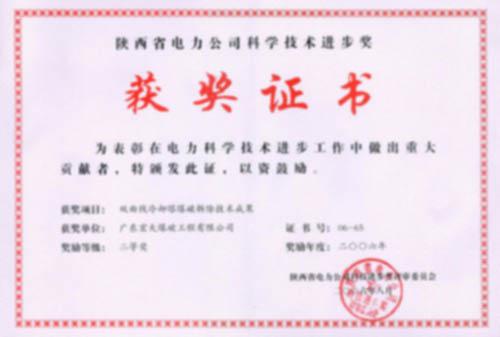 我司的双曲线冷却塔爆破拆除技术成果获得了由陕西省电力公司科学技术进步奖二等奖。该工程由广东宏大爆破工程有限公司设计并和西北电力建设第四工程公司联手于2005年11月17日进行爆破获得成功,该冷却塔是国内同类型中拆除的最大、最高的一座。