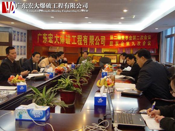 2006年1月18日,广东宏大爆破工程有限公司股东会第八次会议隆重召开,出席此次会议的法人股东有广东省广业资产经营有限公司,广东省广业环保产业集团公司,广东省工程技术研究所,广东省广之业经济开发有限公司,自然人股东有郑炳旭先生、王永庆先生、傅建秋先生等21位,出席股东合计代表公司股权的90.93%。 会议选举李应儒先生、陈晓东先生、曾瑞军先生、郑炳旭先生、王永庆先...