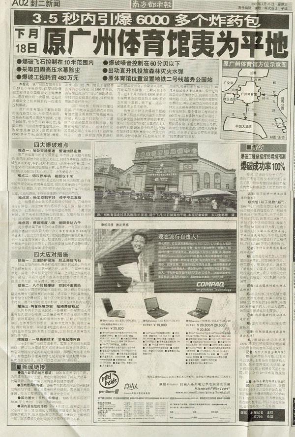 ? 2001-4-25南方日报1版? ? 2001-4-26南方日报A1版? ? 2001-5-14南方日报D1版? ? 2001-5-15南方日报D1版? ? 2001-5-16南方日报D1版? ? 2001-5-17南方日报B2版? ? ?2001-5-18南方日报D1版 ? 2001-5-18南方日报D2版 ? ?南方日报头版200